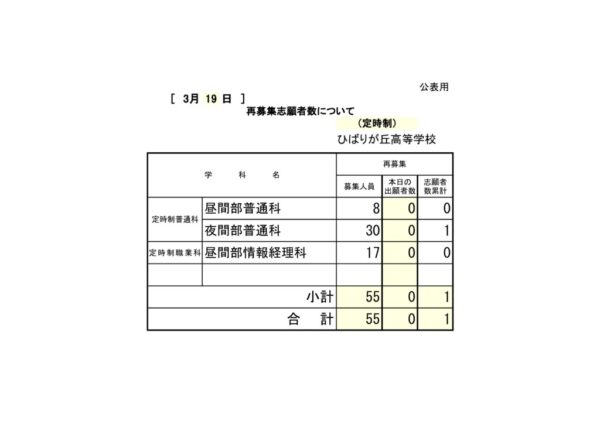 令和8年度 入学者選抜再募集検査 志願者数(3日目)